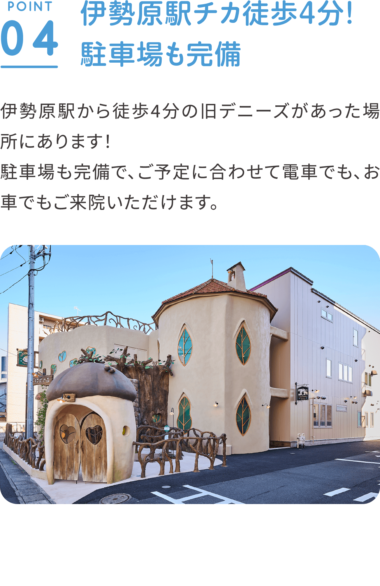 ツリーハウスがシンボルの3階建て!温かみのある可愛らしい歯科医院で、みなさまをお待ちしています。