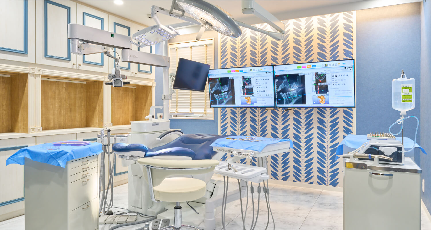 天然歯に近い使い心地と美しい見た目が人気のインプラント治療。当院では外科処置を一度で済ますことができる即時埋入法を採用しております。