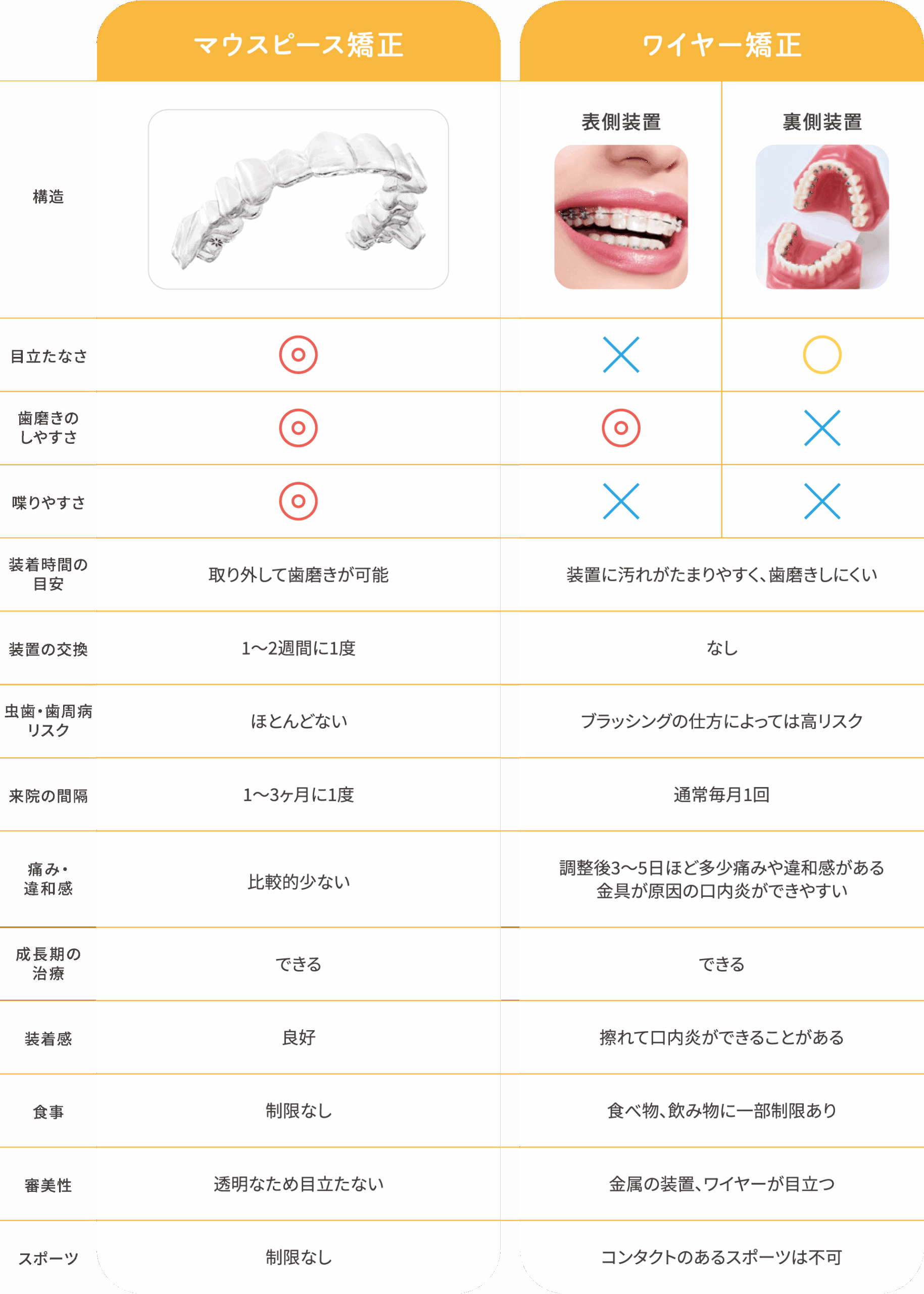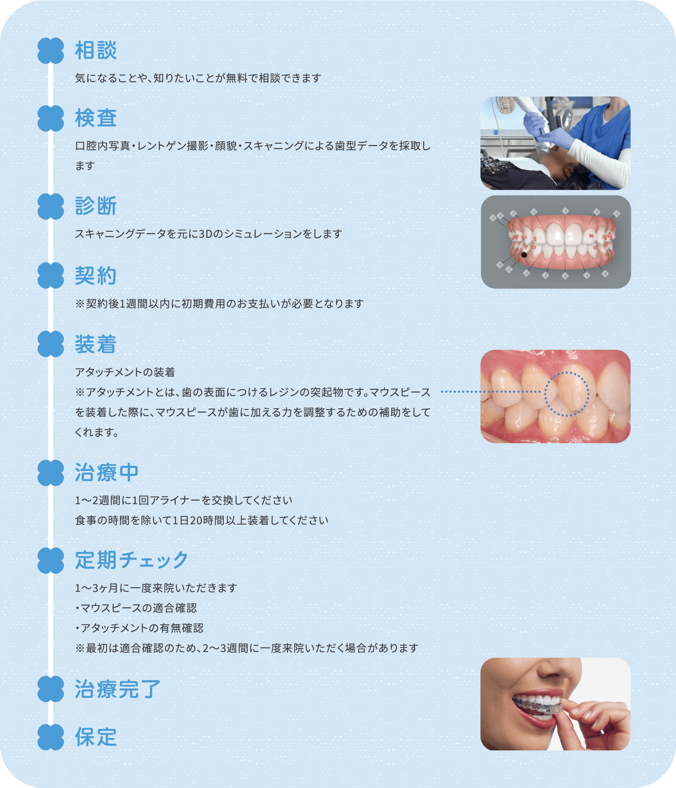 1〜2週間で一度マウスピースを交換していくため、常に衛生的。