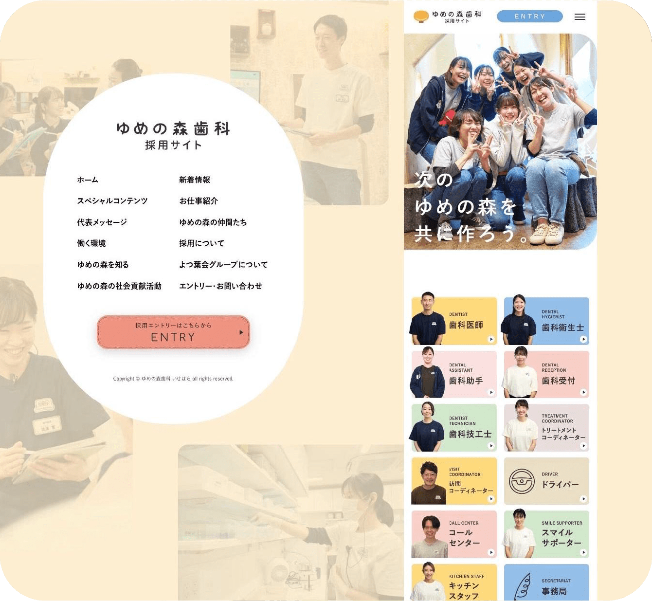 医療法人よつ葉会ゆめの森歯科のスタッフ求人サイトはこちらをご覧ください。よつ葉会の理念やビジョンをはじめ、採用コンセプト、先輩の声、教育制度など、「ゆめの森歯科で働いてみようかな?」とお考えの歯科医師、歯科衛生士、歯科助手の方に向けた豊富なコンテンツが自慢です。見学や面接のお申し込みも求人サイトにてお受けしております。あなたとお会いできる日を楽しみにしております。