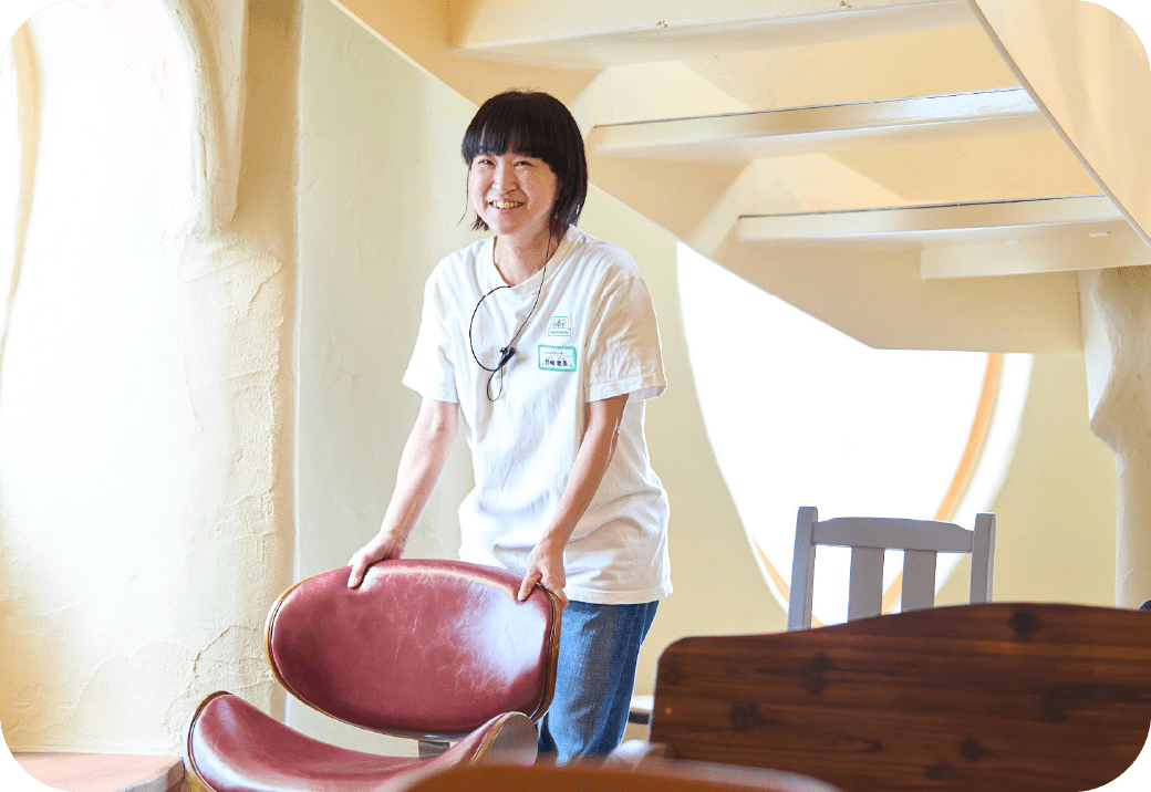 以前は販売職をしておりましたが、出産を機に退職しました。子育てが少し落ち着いた後は工場で勤務していましたが、もっと人との関わりのある仕事がしたい、人の役に立ちたい、という思いからまったくの未知の世界に飛び込んでみました!